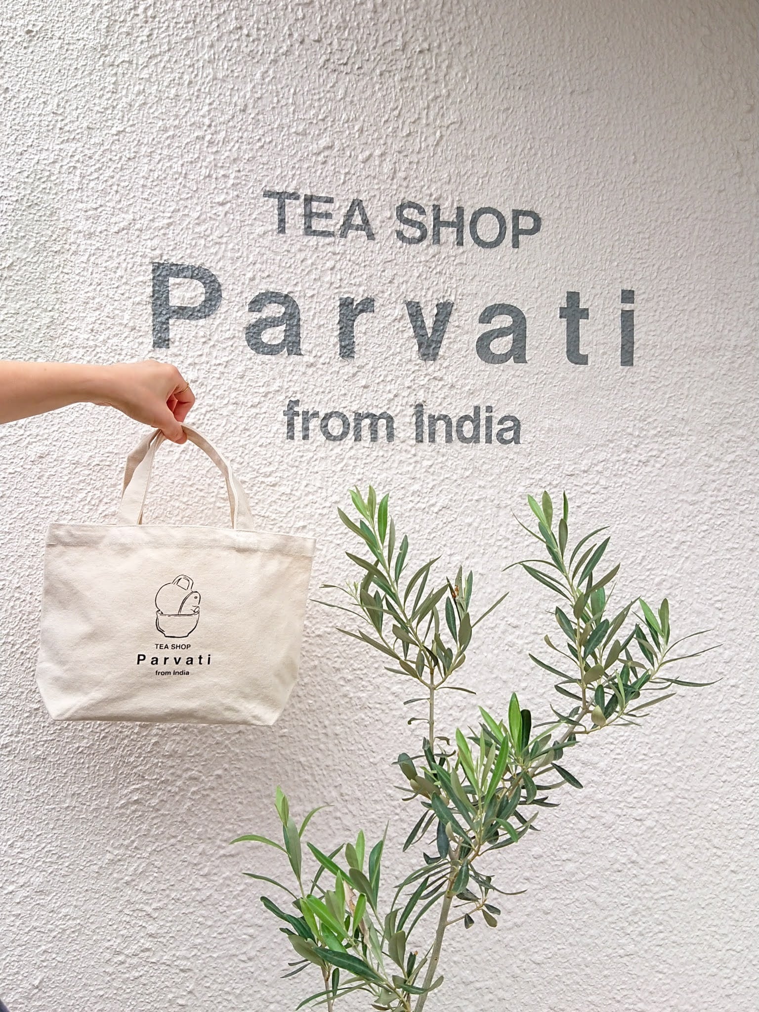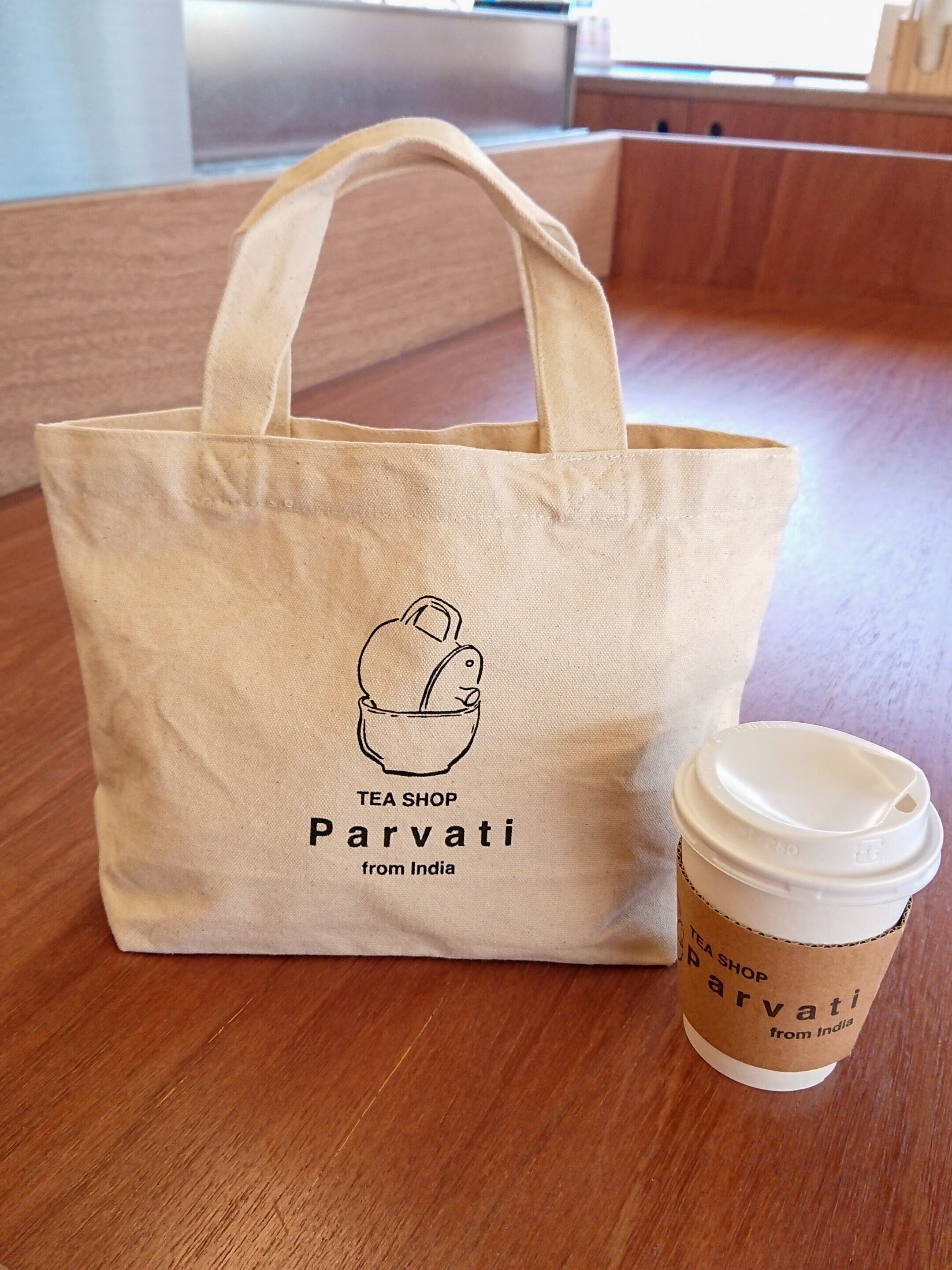 Tea Shop Parvati オリジナルロゴ入りのランチバッグ。